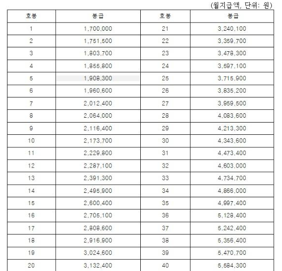 물론 이 금액은 호봉이 상승할수록 증가하게 설계되어 있습니다.