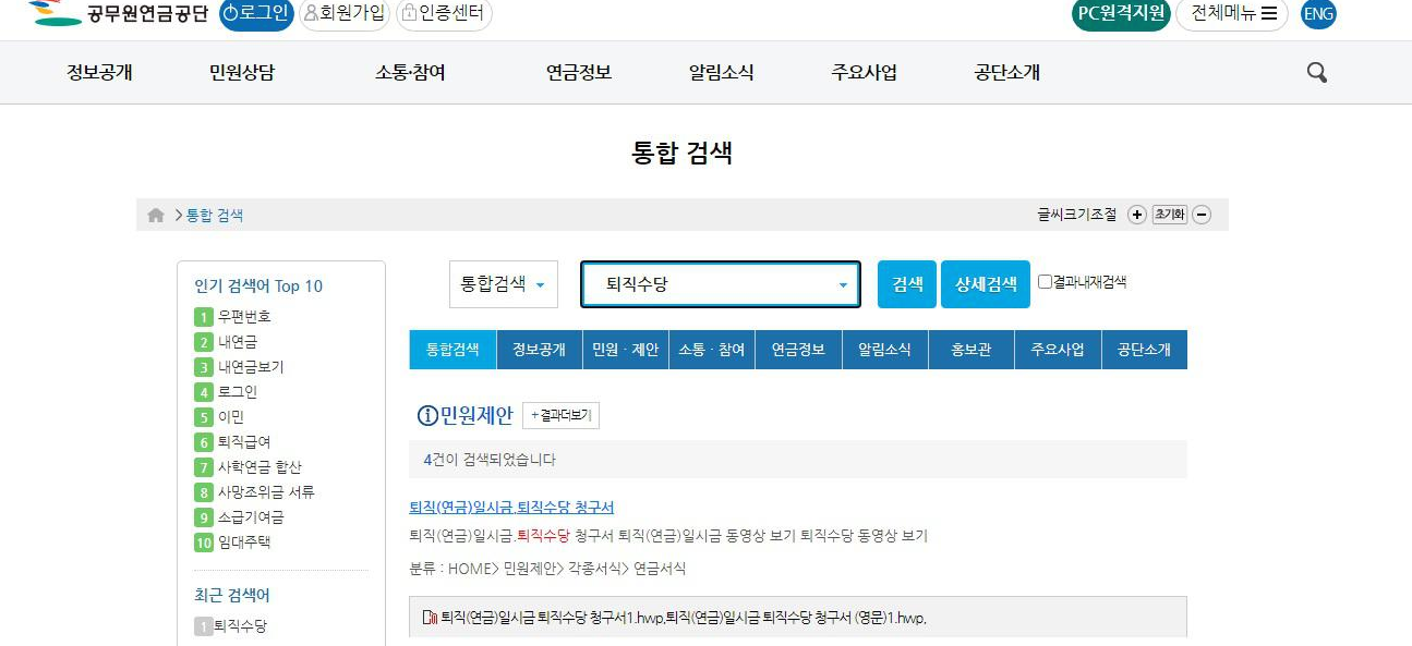 통합검색에서 퇴직금을 입력한 후 해당페이지로 쉽게 이동할 수 있으니 관심이 있으신 분들은 참고하시기 바랍니다.