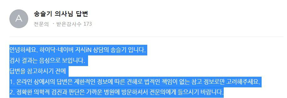 네이버에는 의사를 포함한 전문가들이 답변을 달아주니 참 좋은 것 같다.