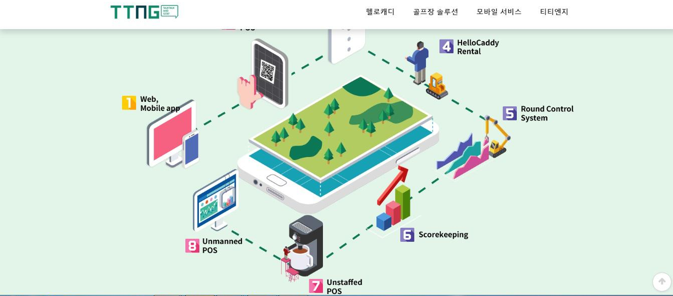 2014년에 티티엔지 법인이 설립되었고 톡톡골프 GPS 어플리케이션 런칭, 셀프라운드 관제시스템 개발 등을 이뤄냈습니다.