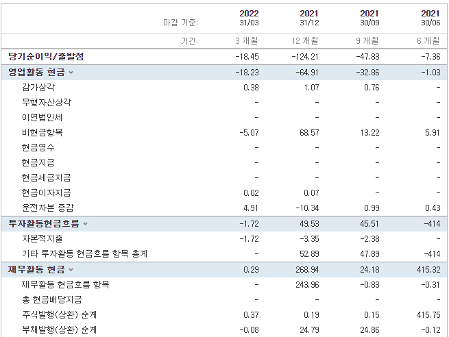 영업활동 현금, 투자활동 현금흐름, 재무활동 현금과 관련하여 분석이 가능합니다.