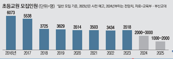 그런데 문제는 초등교사 티오는 앞으로 연간 2000명도 뽑지 않겠다는 방침을 정부가 정한 거구요.