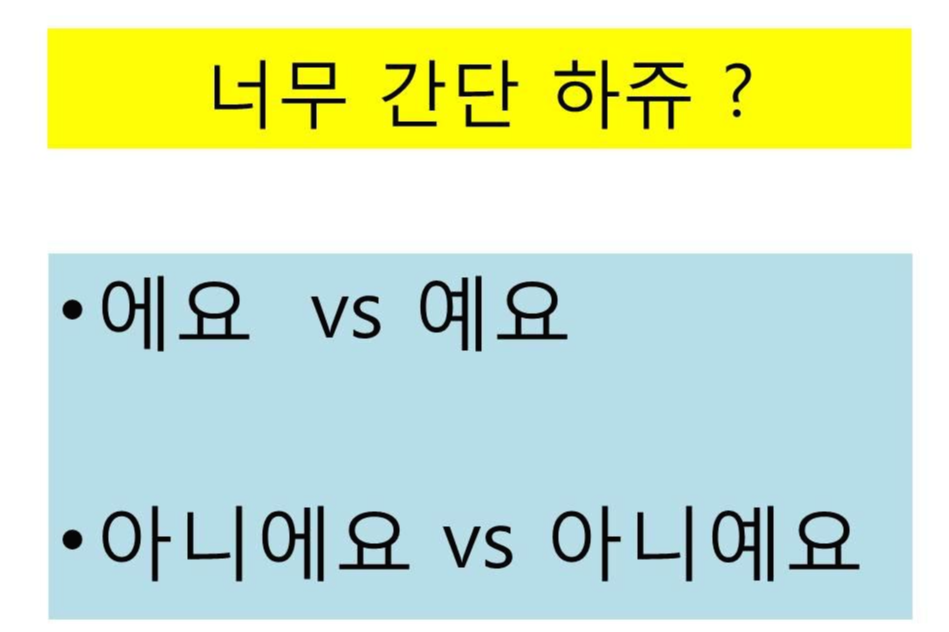 한국 사람도 글을 작성하다 보면 우리말이 헷갈리는 경우가 많이 있습니다. 오늘은 많은 사람들이 실수를 하는 표현 중의 하나를 구분하는 방법을 알아보겠습니다. 공식적이고 격식을 차려야 하는 상황이라면 우리는 그 차이를 정확하게 나타낼 필요가 있습니다. 오늘 소개해드릴 한국인이 헷갈리는 표현은 <에요, 예요> 그리고 <아니에요 아니예요>에 관한 것입니다.