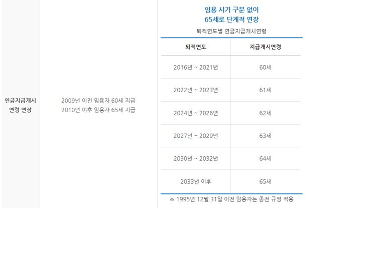 그리고 연금 지급 개시연령은 2021년 퇴직자 이후로