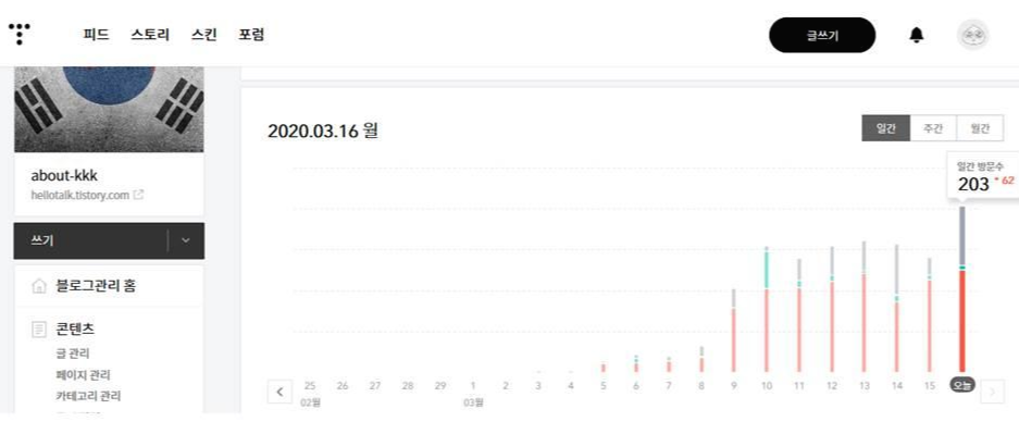 티스토리 일일 방문자 100명 넘어 200명 돌파