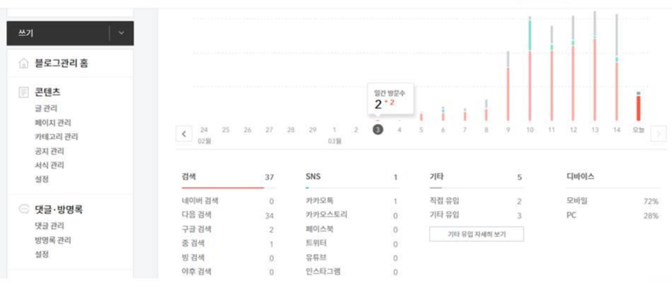 며칠 전에 하루 방문자 100명을 티스토리 시작(3월 3일)후 일주일 만에 돌파했음을 기록으로 남겼습니다. 그날이 3월 9일 입니다.
