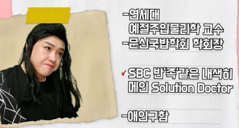 육은영 쌤의 전적도 진짜 화려하거든요. 행동교정물리학회 회장님은 기본이고, 문신국밥학회 회장님에다가, 심지어 sbc 육아 프로그램들을 패러디한 듯한 '반'족'같은 내색히 메인 솔루션 닥터, "아이 머리가 갈라졌어요" 메인 솔루션 디렉터까지!