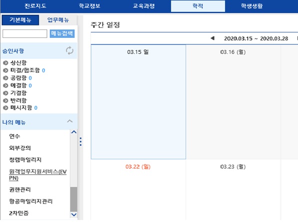 이동 경로: 나이스 – 기본메뉴 – 원격업무지원서비스(evpn)로 들어갑니다.